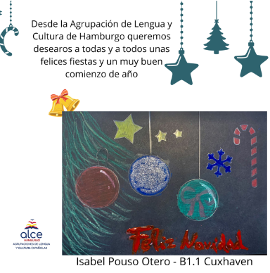 Desde ALCE Hamburgo queremos desearos una muy feliz Navidad y unas fiestas llenas de alegría, calma y buenos momentos en familia. Agradecemos sinceramente el apoyo y la colaboración e las familias y os enviamos nuestros mejores deseos para el año que comienza.