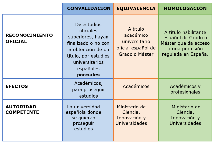 En la educación universitaria, el reconocimiento de estudios puede ser de tres tipos, en función de lo que necesitemos, tal y como recoge la tabla 1.