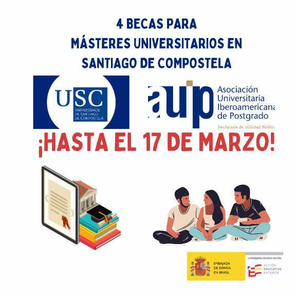 La Universidade de Santiago de Compostela (USC) y la Asociación Universitaria Iberoamericana de Postgrado (AUIP) convocan 4 becas de 5.000 euros cada una para estudiantes latinoamericanos que deseen cursar un Máster Universitario en la USC durante el curso académico 2025-2026.