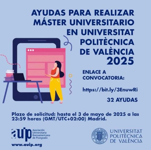 SubirLa Universitat Politècnica de València (UPV) convoca ayudas destinadas a estudiantes y personas egresadas de universidades extranjeras del ámbito iberoamericano para cursar Másteres Universitarios en la UPV durante el curso académico 2025/2026.