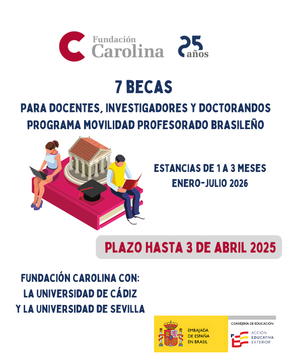 La Fundación Carolina, en colaboración con la Universidad de Cádiz y la Universidad de Sevilla, convoca 7 becas de movilidad dirigidas a profesorado universitario, personal investigador y estudiantes de doctorado en fase de investigación, con el objetivo de promover la cooperación cultural y científica entre Brasil y España.