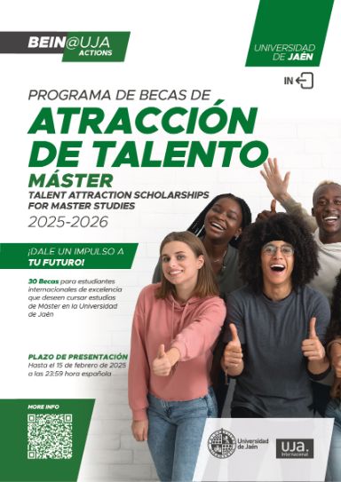 Subir🎓 ¡BECAS ATRACCIÓN DE TALENTO DE LA UNIVERSIDAD DE JAÉN 2025/26!Salto de línea Salto de línea La UJA abre convocatoria para estudiantes internacionales de excelencia.Salto de línea Salto de línea ✨ Modalidad A: