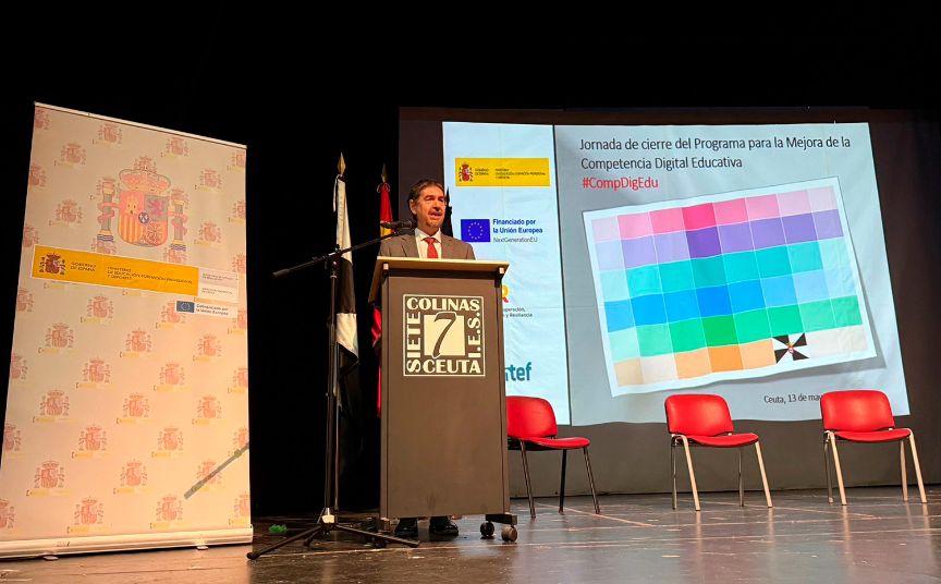 El secretario de Estado de Educación, Abelardo de la Rosa, ha participado hoy en la jornada de cierre del Plan de Mejora de la Competencia Digital Docente en la Ciudad Autónoma de Ceuta, en el que el Ministerio ha invertido 655.600 euros.