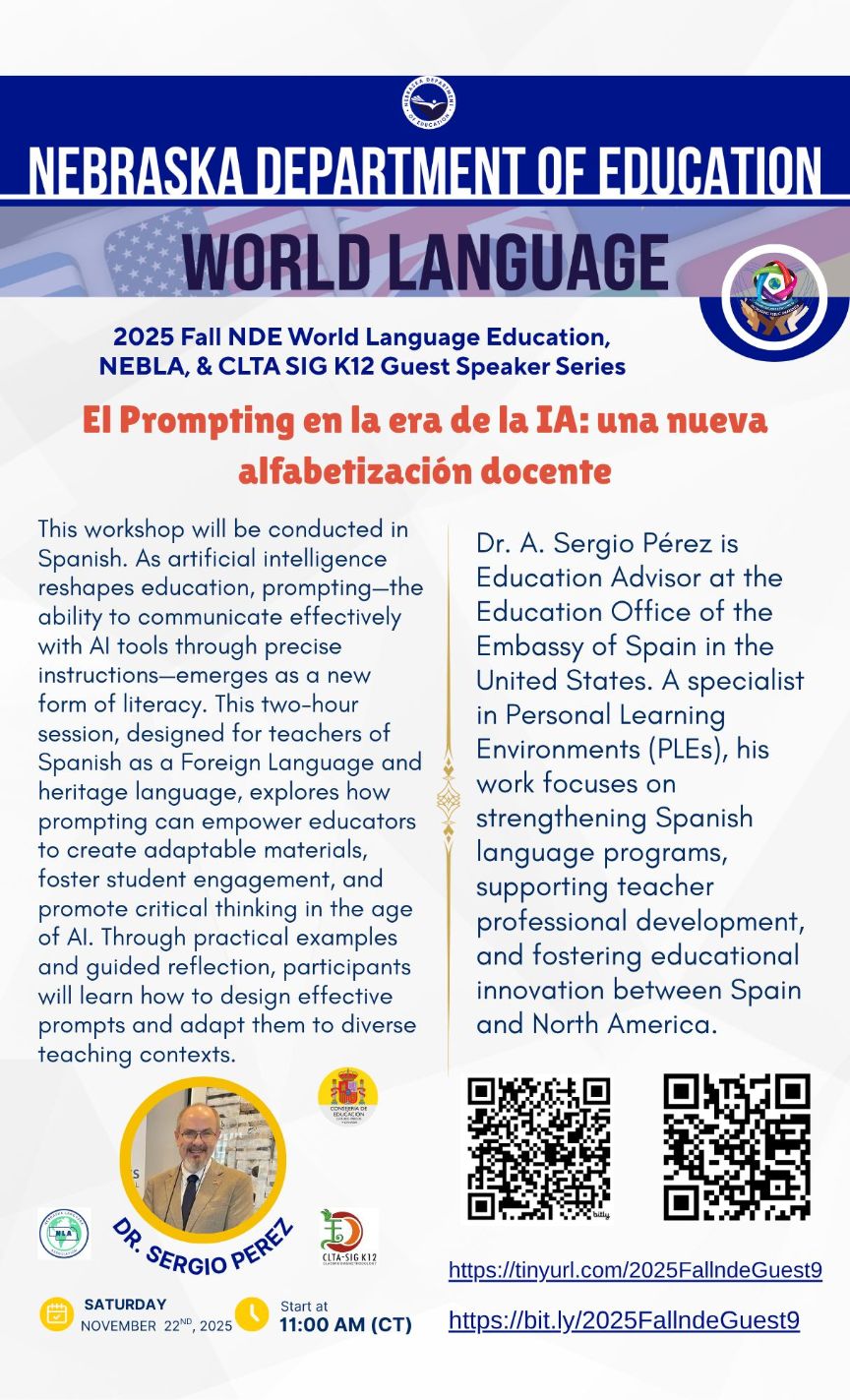 El Prompting en la era de la IA: una nueva alfabetización docente (Taller organizado en colaboración con el Nebraska Department of Education, World Language Education)