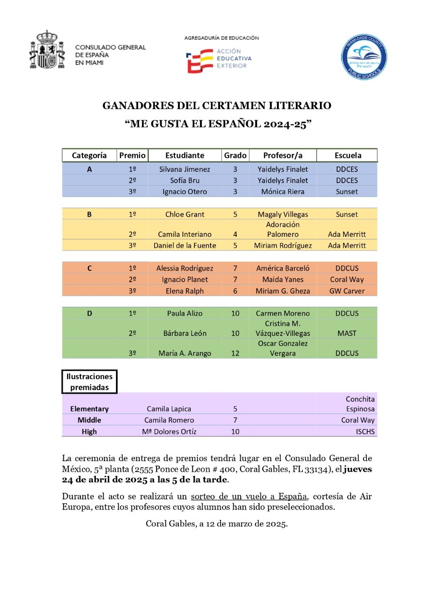 Bases del Certamen literario "Me gusta el español" 2024-25
