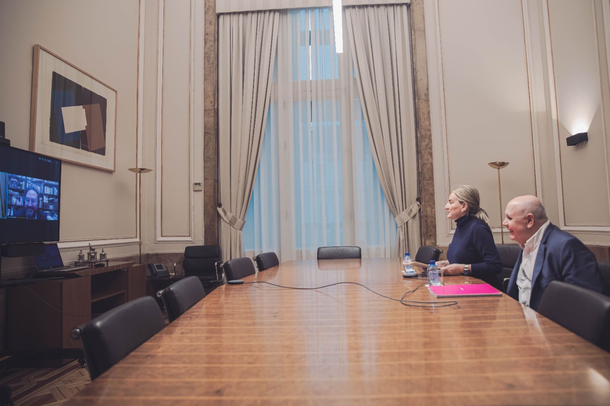 La ministra ha podido conversar de manera telemática con Cristóbal Barea, presidente de ADIDE, y con Jesús Marrodán y Pilar González, presidente y secretaria general de USIE, respectivamente. A todos les ha trasladado su voluntad de diálogo y de avanzar en aquellas medidas que permitan mejorar la calidad del sistema educativo español.