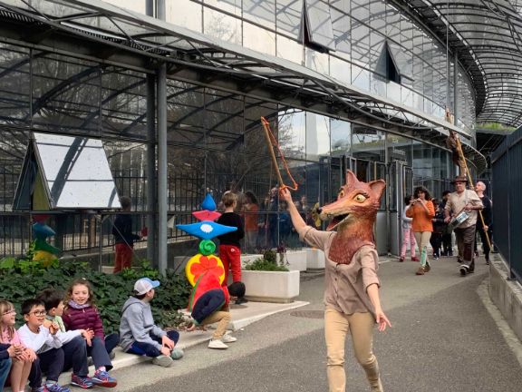 Después, todos los niños siguieron a los Titiriteros y en la Salle de Conférences realizaron una maravillosa representación con marionetas: La fábula de la raposa.