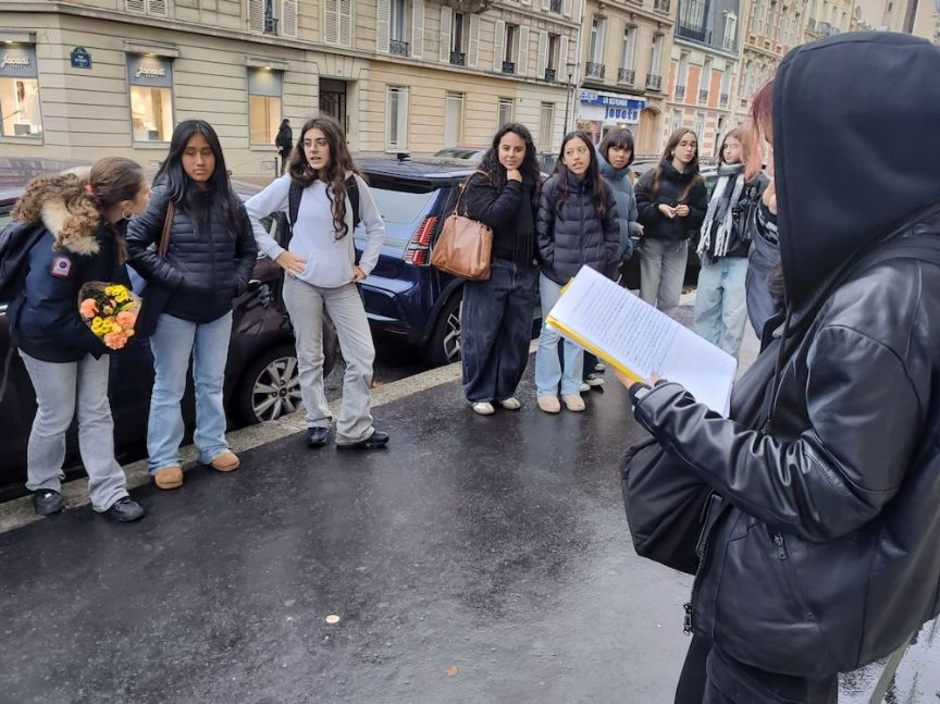 El 25 de noviembre de 2025, las alumnas y los alumnos de 3ème de nuestra sección realizaron un itinerario conmemorativo en las proximidades de nuestro centro educativo (en el distrito 17e de París).