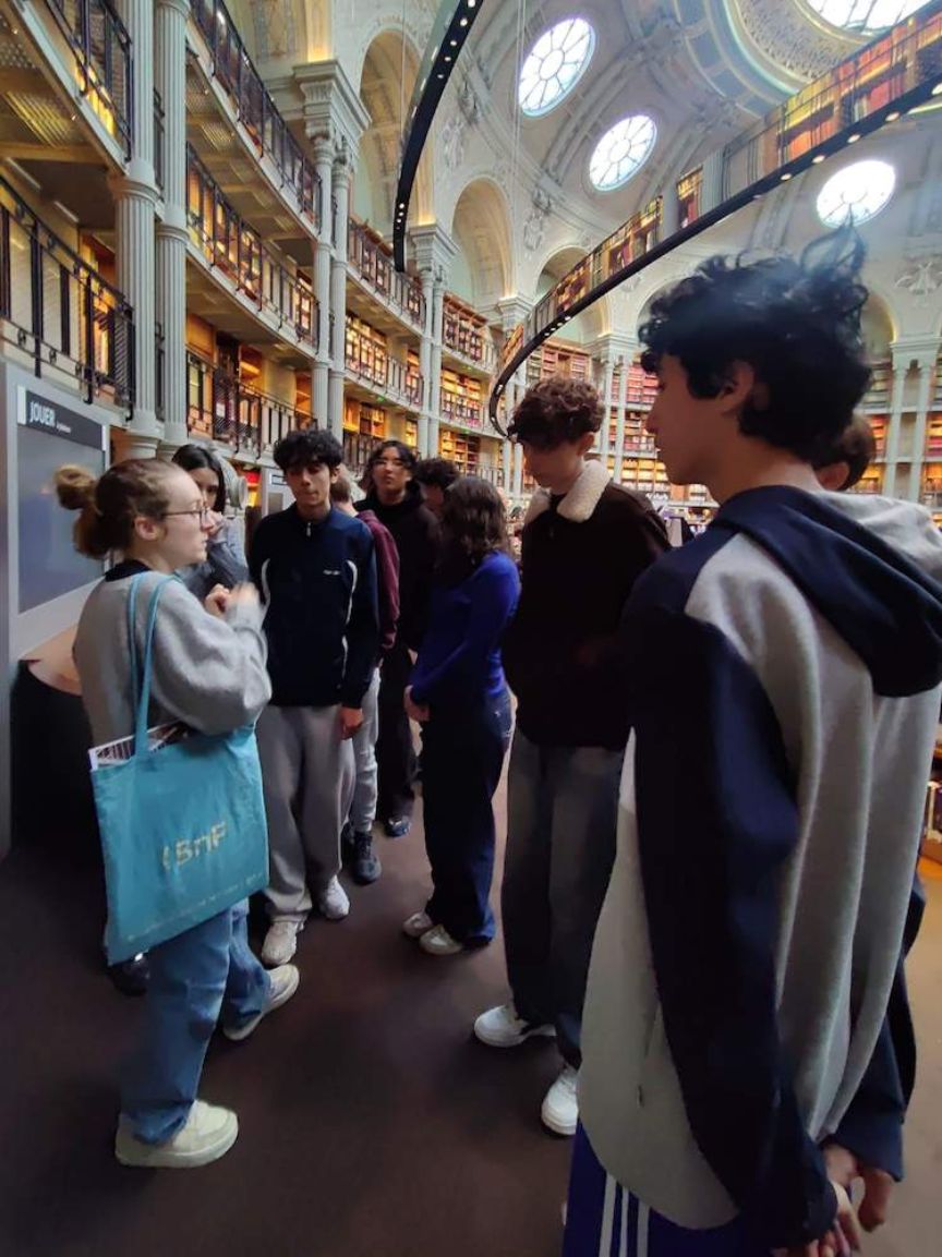 El 4 de noviembre de 2025, el grupo de 2nde la sección internacional española realizó una visita guiada en la sede Richelieu de la Biblioteca Nacional de Francia. Desde los primeros testimonios escritos en cuneiforme hasta algunos hitos relevantes de la ciencia y la cultura del siglo XX, en un edificio recientemente restaurado.Salto de línea ¡¡Las salas de lectura y de investigadores son impresionantes!!