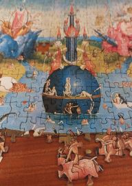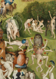 El Museo del Prado nos presenta El Jardín de las delicias como «la creación más compleja y enigmática» de El Bosco. Es una obra de carácter moralizador en la que El Bosco insiste en lo efímero de los placeres representados en la tabla central. El pecado es el único punto de unión entre las tres tablas. Desde su aparición en el Paraíso con la serpiente, el pecado está presente en el mundo engañoso a los sentidos, y tiene su castigo en el Infierno».Salto de línea Se trata de un tríptico pintado al óleo sobre madera de roble cuya fecha de creación se estima entre los años 1490 y 1500. El tríptico....>>
