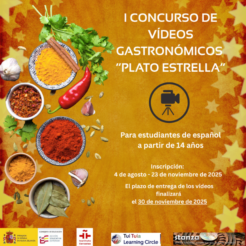 La Asesoría de Educación en Wellington y la Embajada de España en Nueva Zelanda convocan la primera edición del concurso de vídeos gastronómicos en español destinado a estudiantes de español a partir de 14 años, con la colaboración de STANZA y el patrocinio del Instituto Cervantes de Sydney.