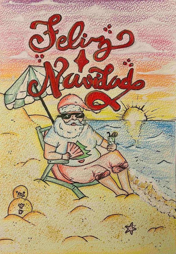 En cuanto a la tarjeta más votada y que es la representativa de la unidad, se encuentra la del Papá Noel veraniego de Tiago, del aula de La Haya.