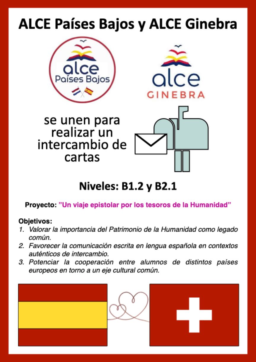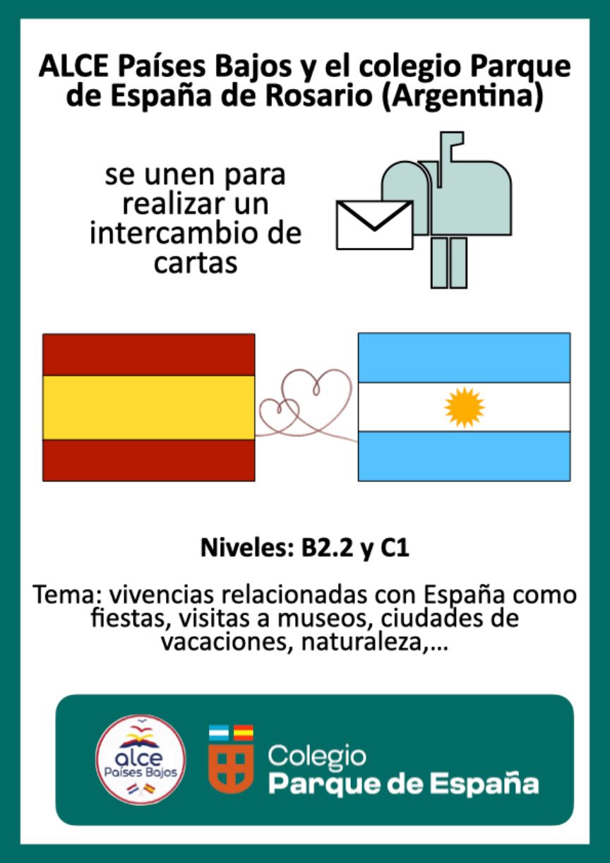 El alumnado de Países Bajos de B1, B2 y C1 ha realizado un intercambio de cartas con el ALCE de Ginebra (Suiza) y con el centro Parque de España de Rosario (Argentina).