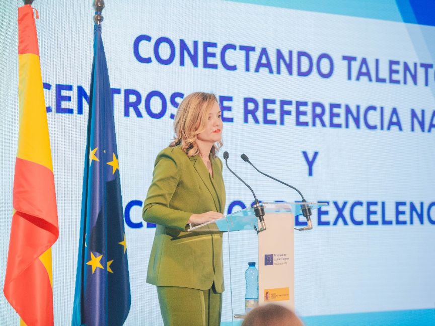 La ministra de Educación, Formación Profesional y Deportes, Pilar Alegría, ha intervenido este viernes en el evento ‘Conectando talento: Centros de Referencia Nacional y Centros de Excelencia de FP en sinergia’, que se ha celebrado en el Mobility Center de la Fundación Ibercaja en Zaragoza, y que ha reunido los proyectos de innovación de varios centros de excelencia y de referencia nacional que forman parte de las dos redes estatales.