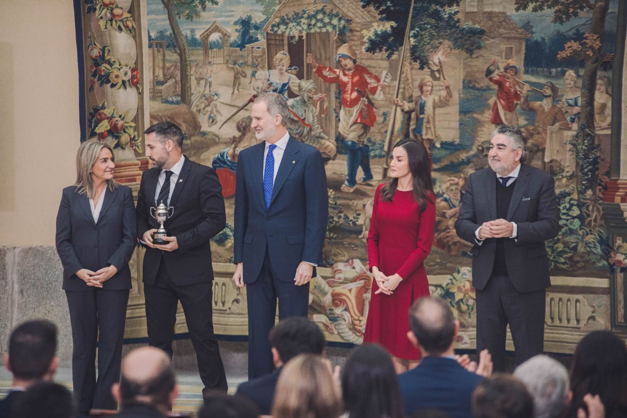 Sus Majestades los Reyes han presidido este miércoles en el Palacio de El Pardo (Madrid) la ceremonia de entrega de los Premios Nacionales del Deporte, con los que el Gobierno de España reconoce anualmente a través del Consejo Superior de Deportes (CSD) a las personas y entidades que más se han distinguido en la competición o en la promoción del deporte.