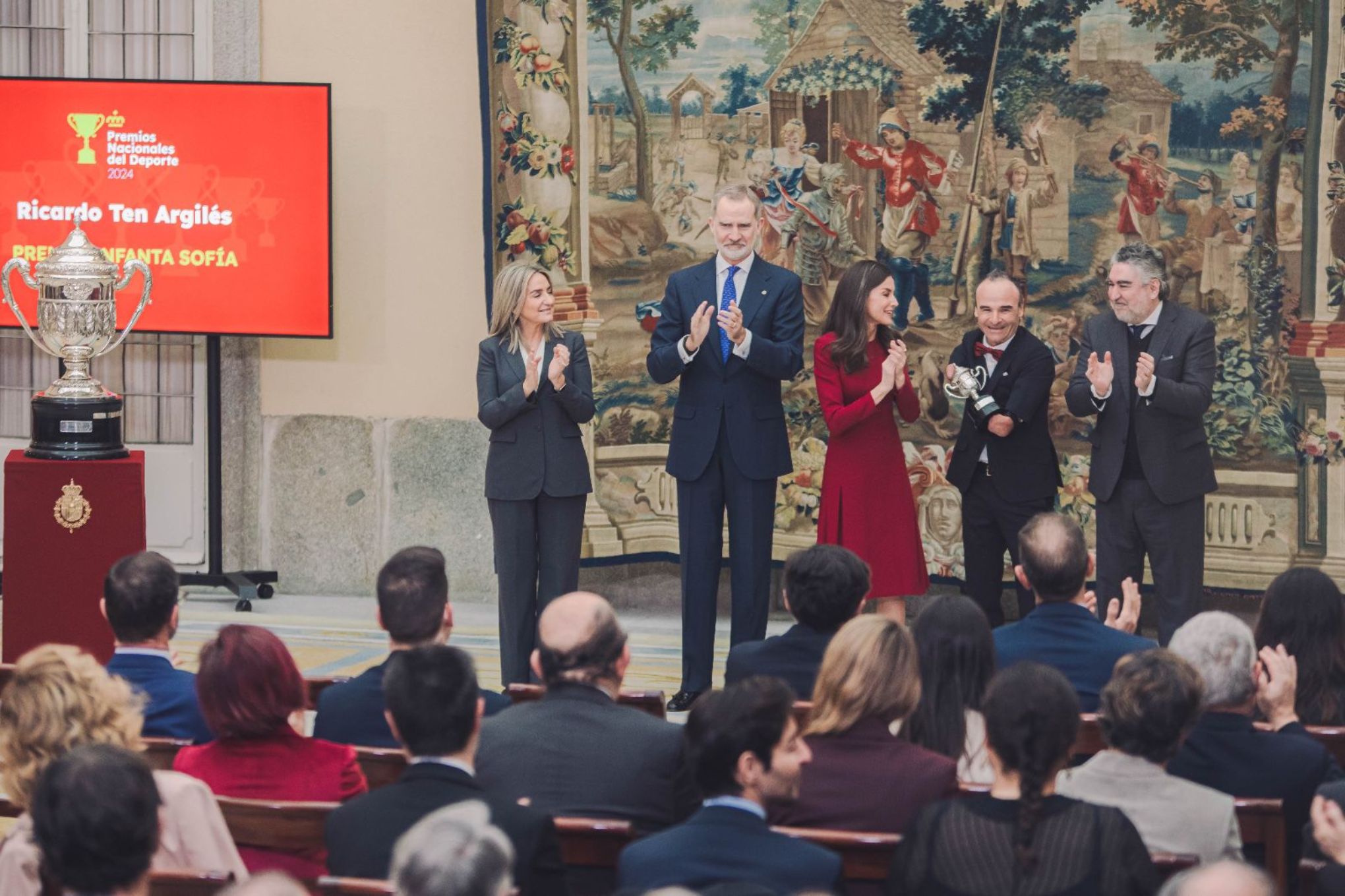Entregados en presencia de la ministra de Educación, Formación Profesional y Deportes, Milagros Tolón, y del presidente del CSD, José Manuel Rodríguez Uribes, los Premios Nacionales del Deporte correspondientes a 2023 y 2024 encumbraron en su máxima categoría a los futbolistas Rodrigo Hernández ‘Rodri’ y Aitana Bonmatí y a los atletas Álvaro Martín y María Pérez, ganadores respectivamente de los Premios Rey Felipe y Reina Letizia como mejores deportistas españoles en categoría masculina y femenina.