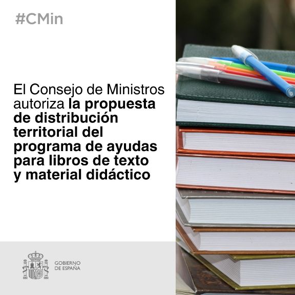 El Consejo de Ministros ha autorizado este martes la propuesta sobre los criterios de distribución y el reparto del crédito del Programa de Cooperación Territorial de ayudas para la financiación de libros de texto y material didáctico en 2026, un programa que el Ministerio desarrolla junto a las comunidades autónomas con una dotación total de 58,5 millones de euros -en 2018, ascendió a 48,5 millones-.