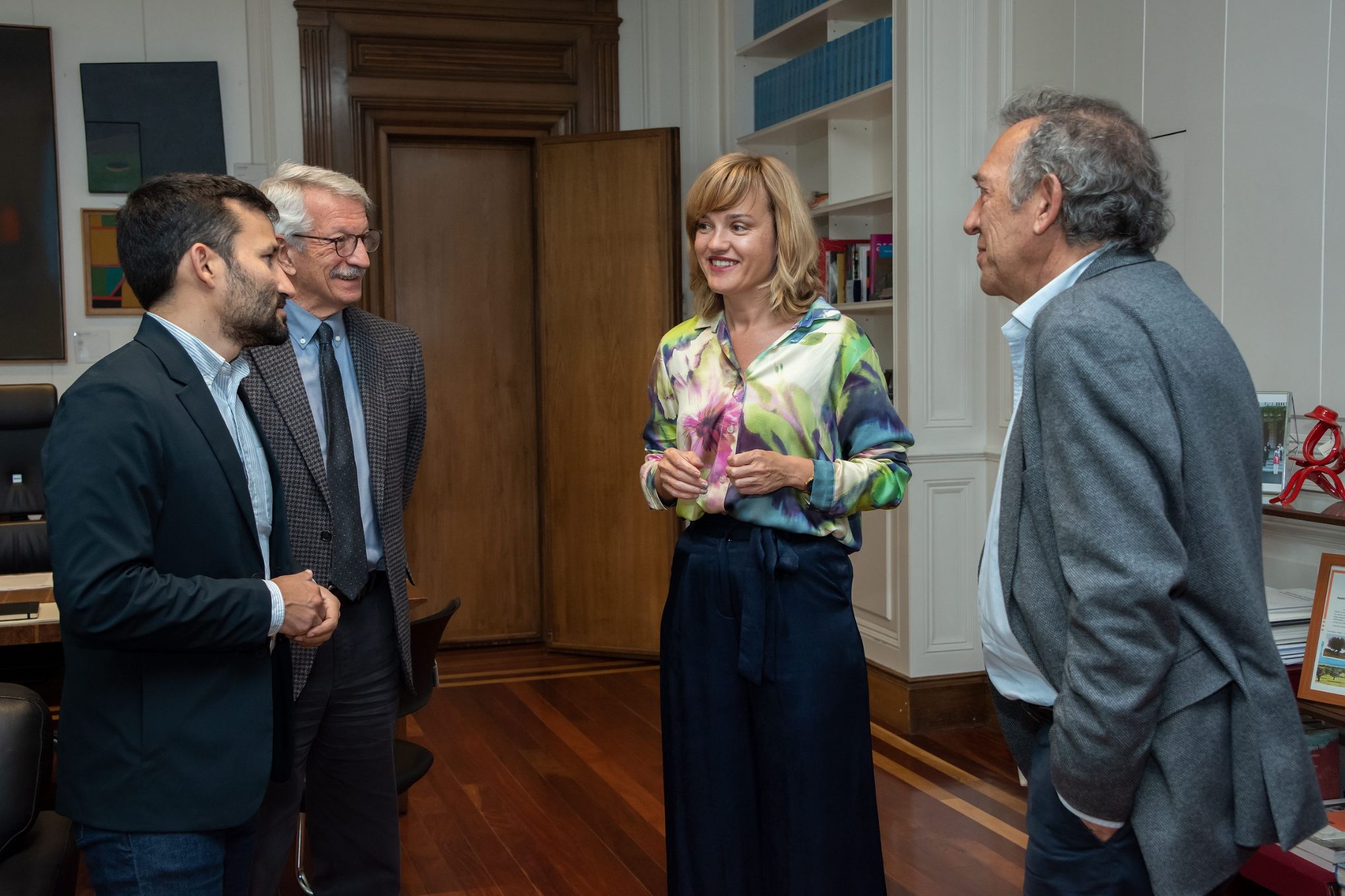 La ministra Pilar Alegría con Alejandro Tiana, Vicent Marzà y Miguel Soler.