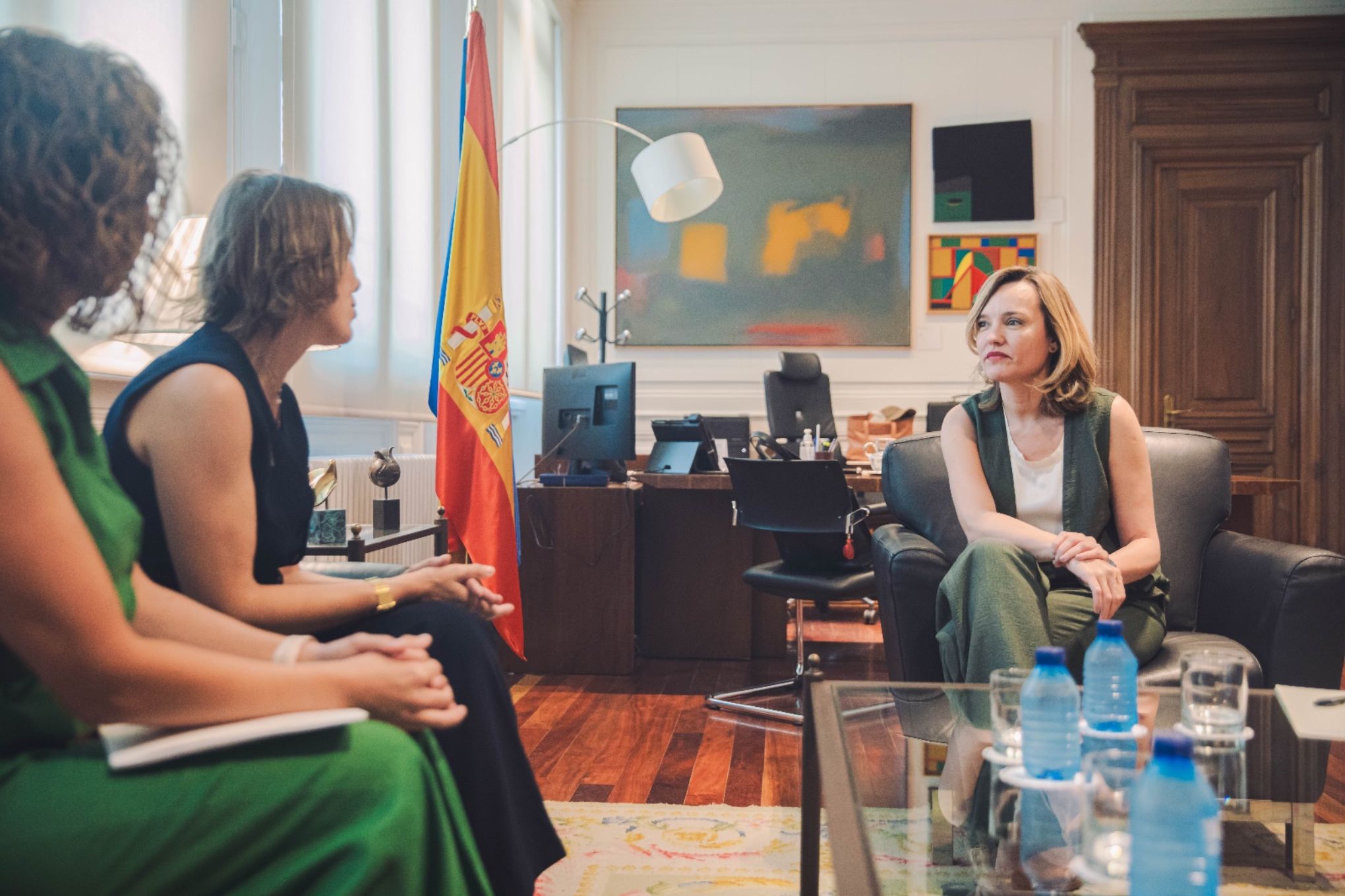 La ministra de Educación, Formación Profesional y Deportes, Pilar Alegría, se ha reunido este jueves con la nueva secretaria general de Enseñanza del sindicato UGT, Beatriz García, en la sede del Ministerio.