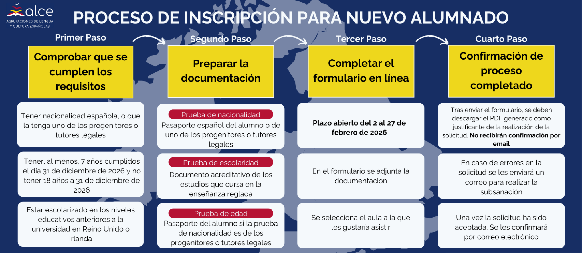 • Prueba de edad: Pasaporte o DNI del alumno/a si la prueba de nacionalidad es de los progenitores o tutores legales.