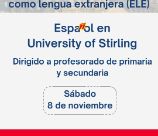 La Consejería de Educación, University of Stirling y la Junta de Castilla y León organizan la Jornada de Español en Stirling, dirigida a docentes de español de primaria y secundaria. La jornada consistirá en cuatro talleres prácticos con ideas y materiales para aplicar en las clases de español y habrá sorteo de becas para cursos en línea de la Universidad de Salamaca.Salto de líneaDía y hora: sábado, 8 de noviembre de 2025, de 9:30 a 15:00.Salto de líneaLugar: University of Stirling, Pathfoot Lecture Theatre, Pathfoot Building.