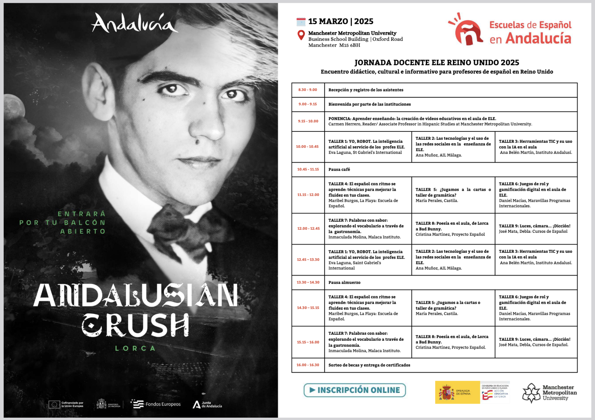 La Consejería de Educación, la Asociación de Escuelas de Español en Andalucía y Manchester Metropolitan University han organizado este encuentro didáctico, cultural e informativo para profesores de español en Reino Unido.