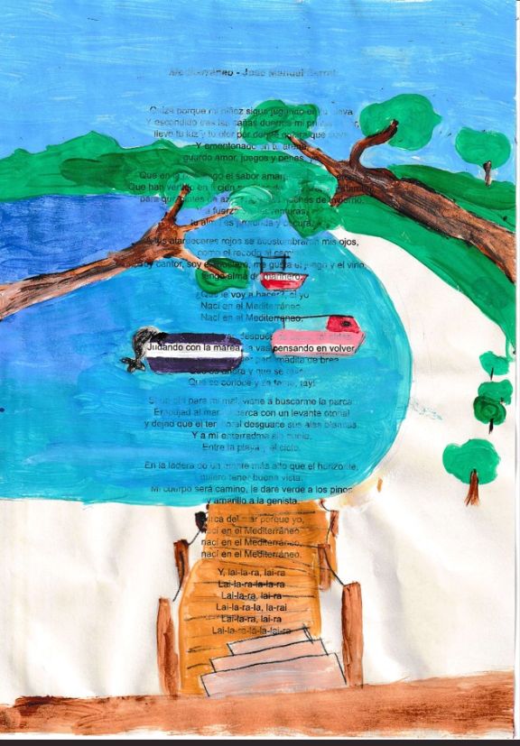 Representación de la canción de J.M. Serrat “Mediterráneo” mediante la técnica de caviardage.