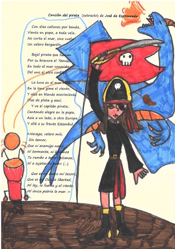 Representación de la “Canción del Pirata” de Espronceda mediante la técnica del caligrama.